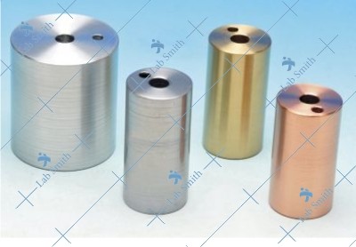 Metal, for experiments on specific heat of different metals, cylindrical metal blocks 1 kg ± 2%. Each block has a central hole for a special immersion heater and an offset hole for Thermometer.
