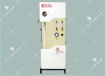 The set-up consists of a glass column packed with Rasching rings. Continuous counter current contacts between the solvent and solute phases are made, which results into extract and raffinate streams. Flow meters (Rotameters) are used to note the flow of solvent & solute respectively. The continuous and dispersed phase streams are metered and derived from separate containers. The total set- up is housed in a well-designed rigid structure. The structure also supports tanks, piping, Rotameters, panel and other units.